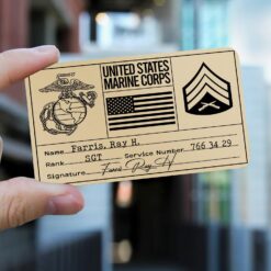 Elevate your printed metal card with a personal touch by incorporating your custom details like name, rank, and years of service. This unique addition commemorates your military experience in a stylish and meaningful way.