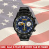 Personalize your Black Stainless Steel Watch with custom engravings of your name, rank, and years of service. This thoughtful addition transforms your watch into a cherished memento, honoring your dedication and commitment to service.