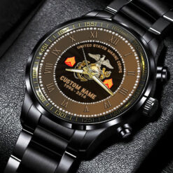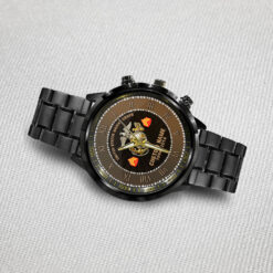 Personalize your Black Stainless Steel Watch with custom engravings of your name, rank, and years of service. This thoughtful addition transforms your watch into a cherished memento, honoring your dedication and commitment to service.