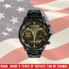 Make your Black Stainless Steel Watch a reflection of your personal journey by including custom details like your name, rank, and years of service. This personalized feature not only adds a touch of elegance but also serves as a timeless tribute to your dedicated service to our country.