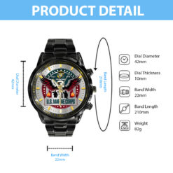 Make your Black Stainless Steel Watch a reflection of your personal journey by including custom details like your name, rank, and years of service. This personalized feature not only adds a touch of elegance but also serves as a timeless tribute to your dedicated service to our country.