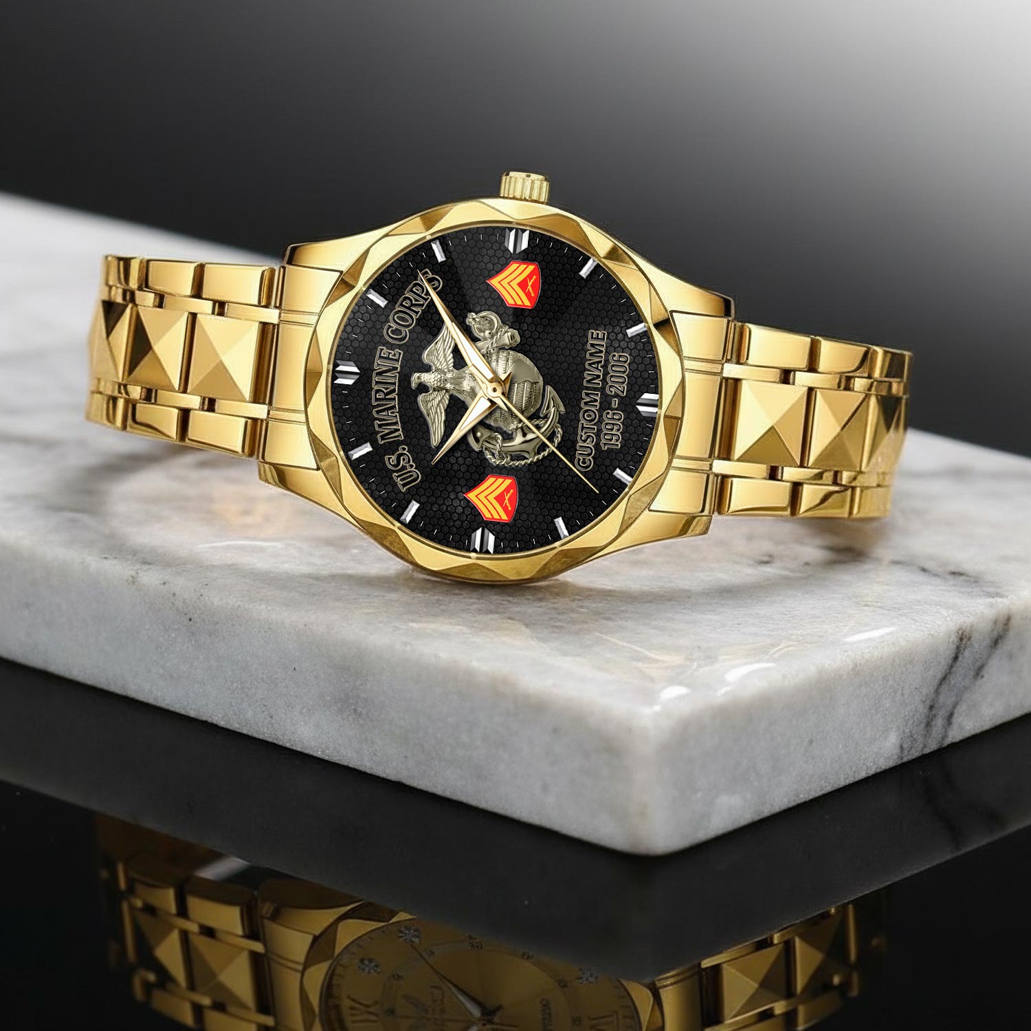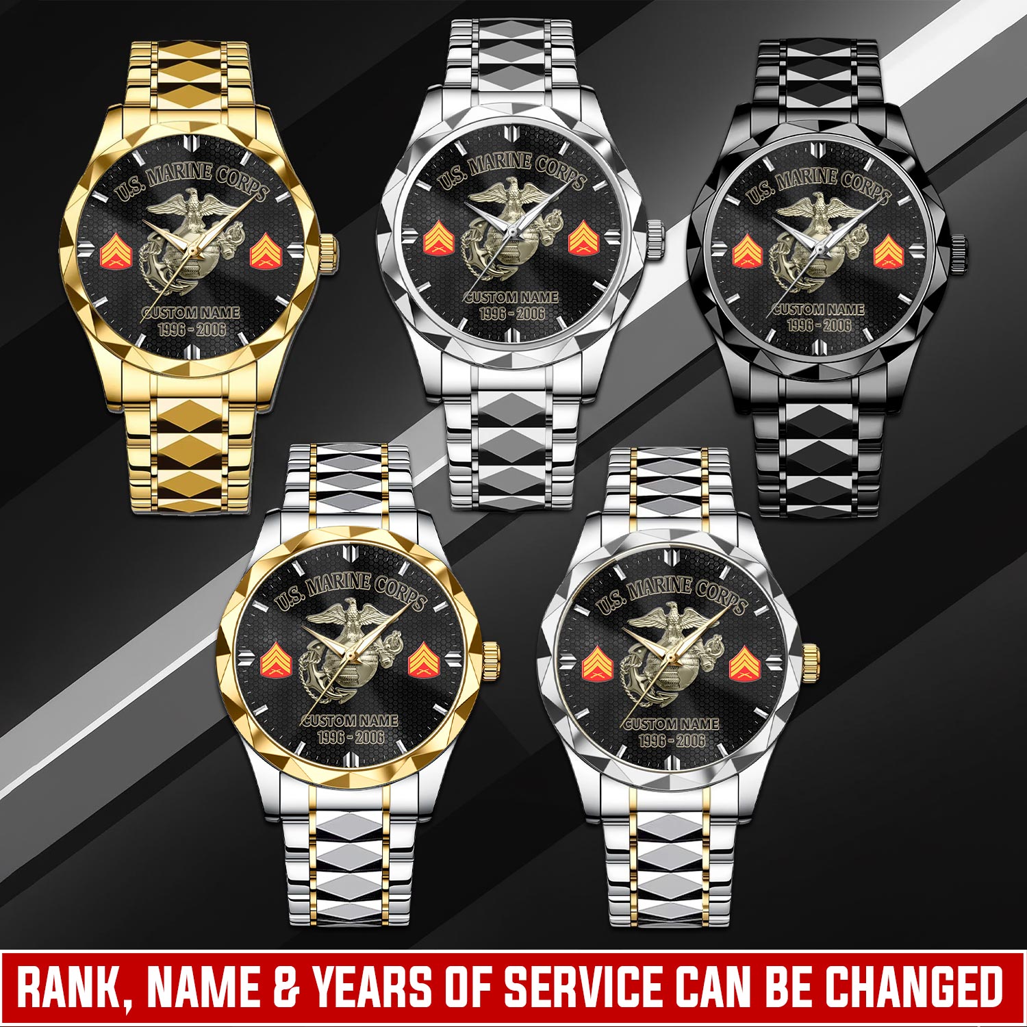 Customize your C-Style Watch with your name, rank, and years of service for a truly one-of-a-kind timepiece. This personalized feature allows you to showcase your military journey with pride and distinction.