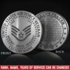 Add Your Personal Touches: you’re enabled to customize both sides of the coin with your name, rank, military branch, unit insignia, or service dates to create a personalized keepsake.
