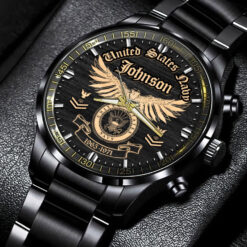 Make your Black Stainless Steel Watch a reflection of your personal journey by including custom details like your name, rank, and years of service. This personalized feature not only adds a touch of elegance but also serves as a timeless tribute to your dedicated service to our country.
