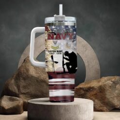 Add a special touch to your tumbler with our personalized options, perfect for commemorating the service of veterans with custom ranks, names, and more.