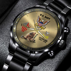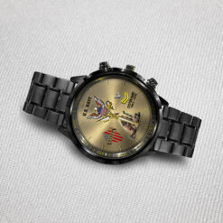 Elevate your Black Stainless Steel Watch with a personal touch by incorporating your custom details like name, rank, and years of service. This unique addition commemorates your military experience in a stylish and meaningful way.