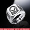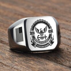 You’re enabled to customize your name, rank, rating, etc. to have them printed on the personalized engraved men’s ring. Make it uniquely yours by incorporating elements that celebrate your military identity and legacy.