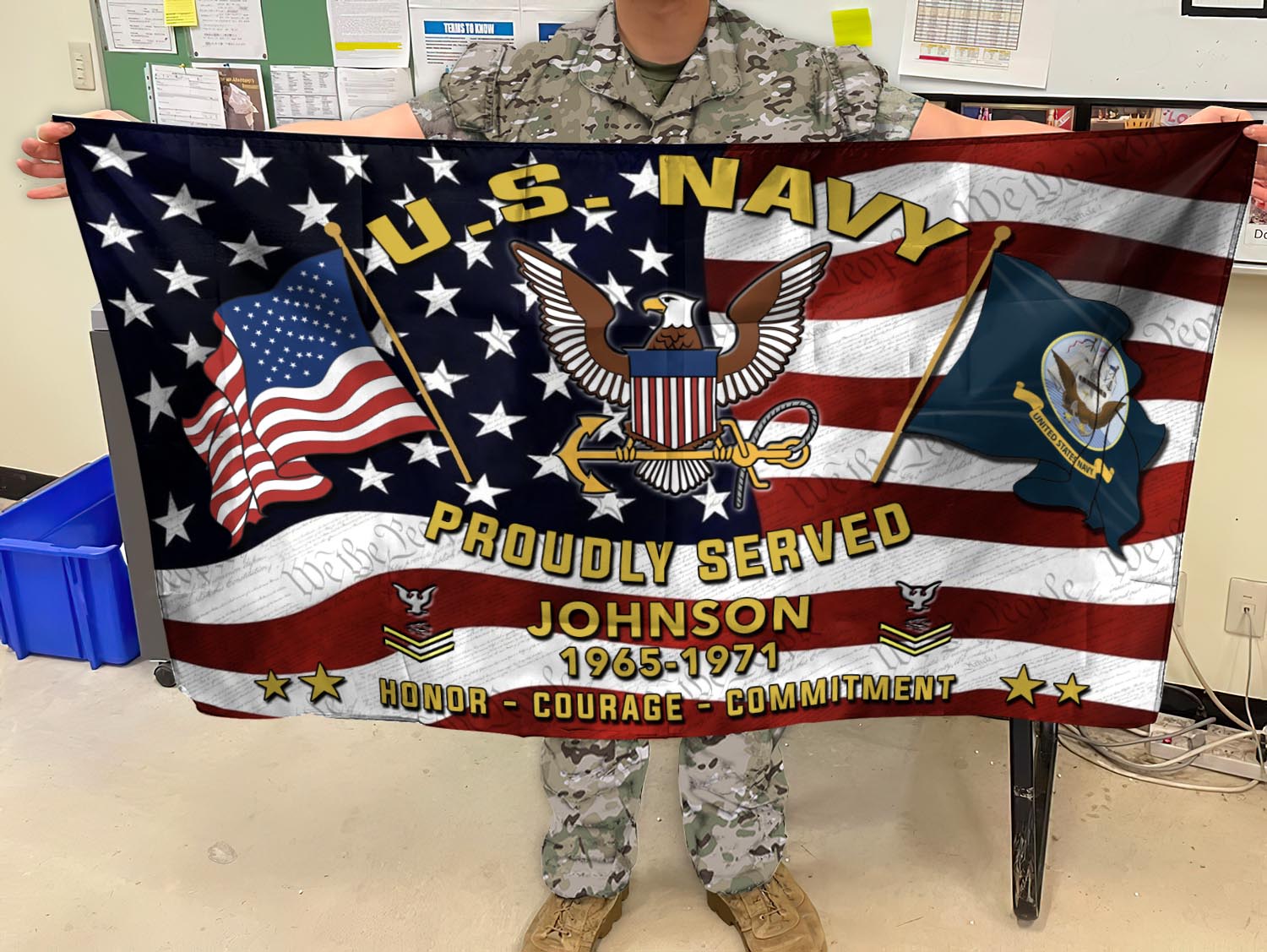 Make every Veterans Day, Memorial Day, or military homecoming special with our personalized flags. These flags are a heartfelt tribute to the brave men and women who have served our country, making them perfect for honoring their sacrifice at any event or gathering.