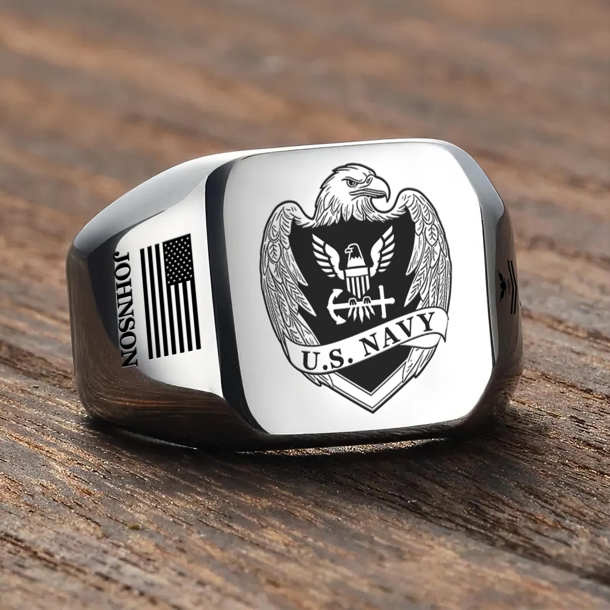 You’re enabled to customize your name, rank, rating, etc. to have them printed on the personalized engraved men’s ring. Craft a distinctive piece that permanently captures your military story and personal milestones.