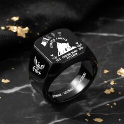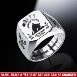 You’re enabled to customize your name, rank, rating, etc. to have them printed on the personalized engraved men’s ring. Make it uniquely yours by incorporating elements that celebrate your military identity and legacy.