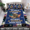 Personalize your quilt bed set with custom engravings of your name, rank, and years of service. This thoughtful addition transforms your watch into a cherished memento, honoring your dedication and commitment to service.