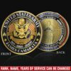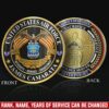 Personalize Your Coin: add custom printing including name, rank, military branch affiliation, unit number, specialty designation (MOS/rating), or deployment dates on both sides.