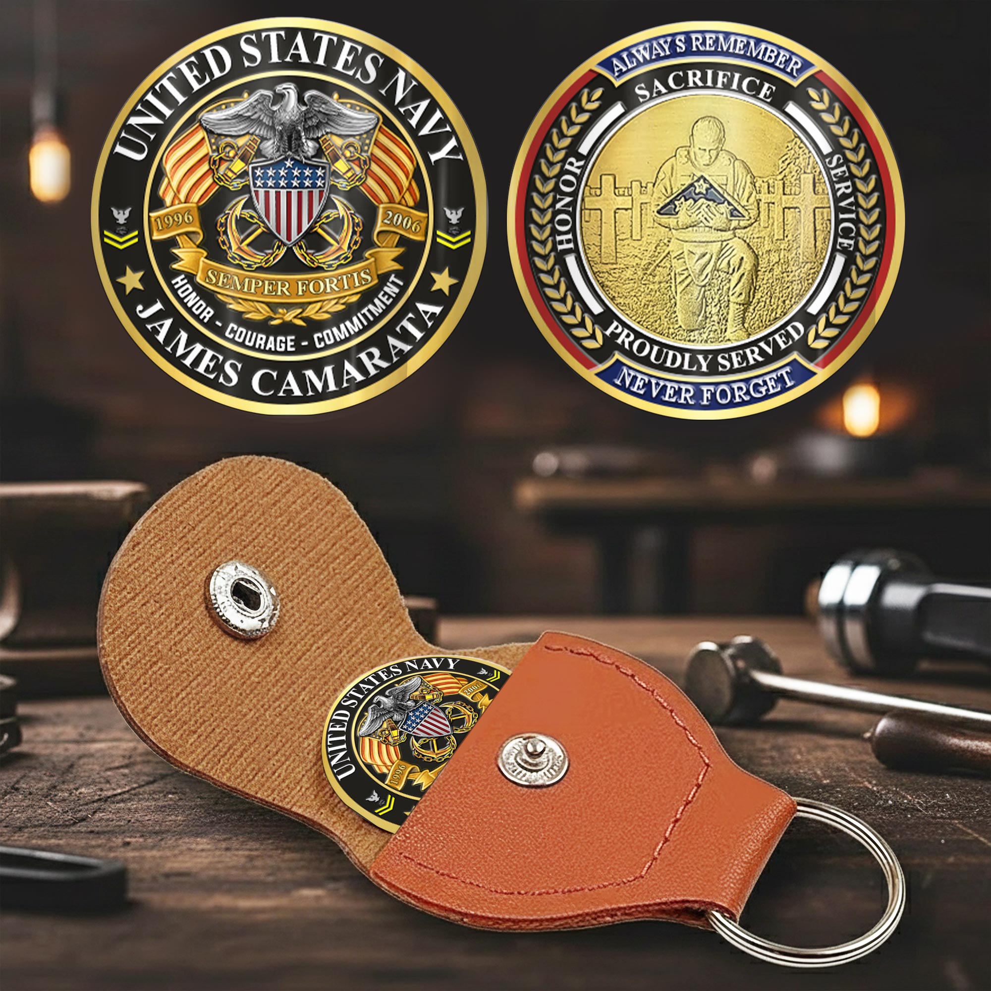 A tradition of honor carried forward. Challenge coins have long represented camaraderie, achievement, and respect within military culture. This personalized coin serves as a tangible reminder of service and sacrifice, perfect for commemorating milestones or showing appreciation to those who’ve answered the call of duty.