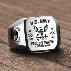 You’re enabled to customize your name, rank, rating, etc. to have them printed on the personalized engraved men’s ring. Make it uniquely yours by incorporating elements that celebrate your military identity and legacy.