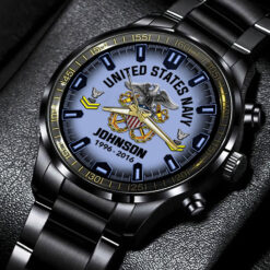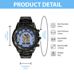 Make your Black Stainless Steel Watch a reflection of your personal journey by including custom details like your name, rank, and years of service. This personalized feature not only adds a touch of elegance but also serves as a timeless tribute to your dedicated service to our country.