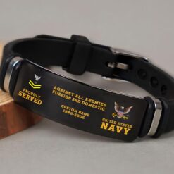 Incorporating an adaptive strap mechanism, the bracelet transcends traditional sizing limitations. It emerges as a profound tribute to veterans, symbolizing dedication, service, and the enduring spirit of patriotism.