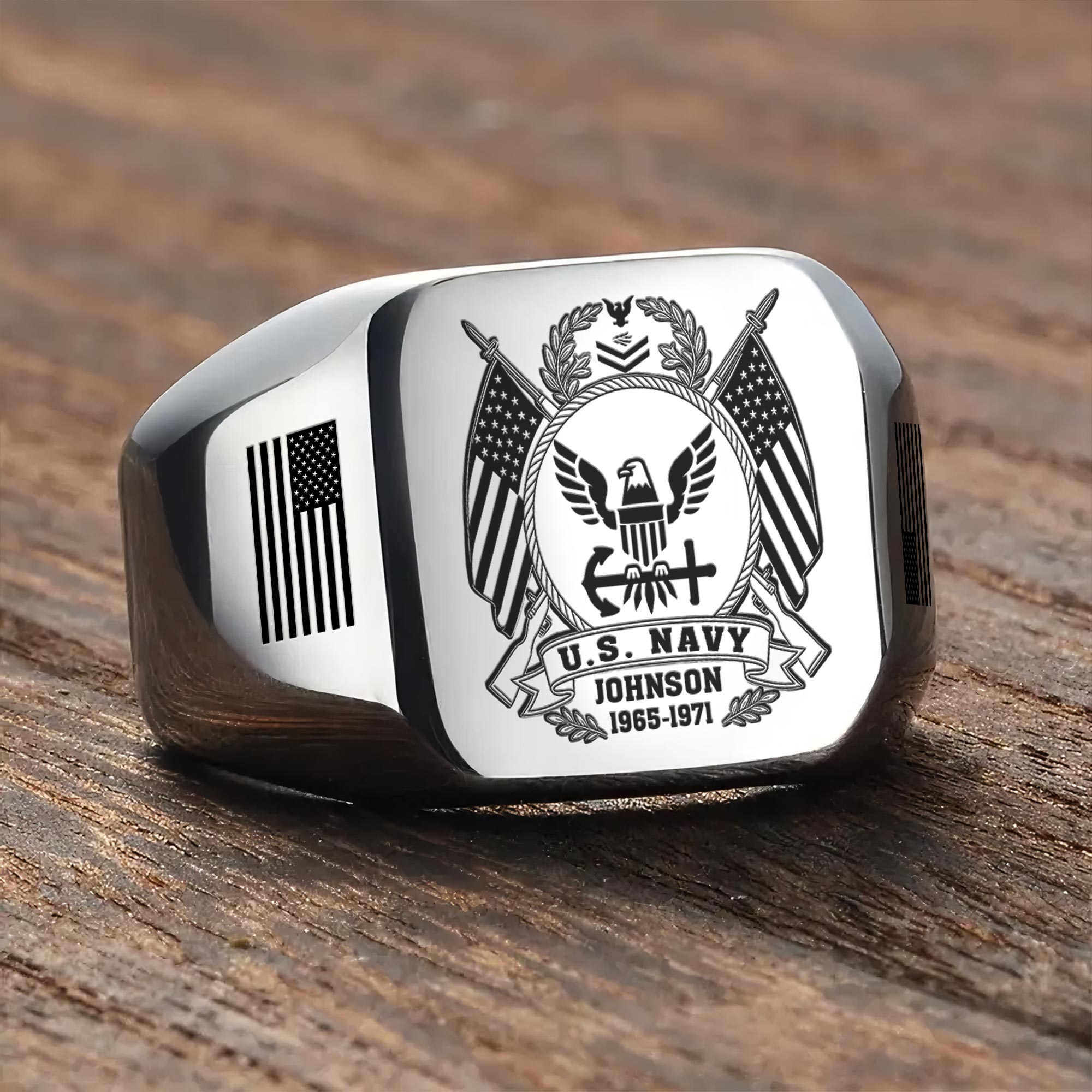 You’re enabled to customize your name, rank, rating, etc. to have them printed on the personalized engraved men’s ring. Personalize this meaningful piece to showcase your military credentials and cherished memories.