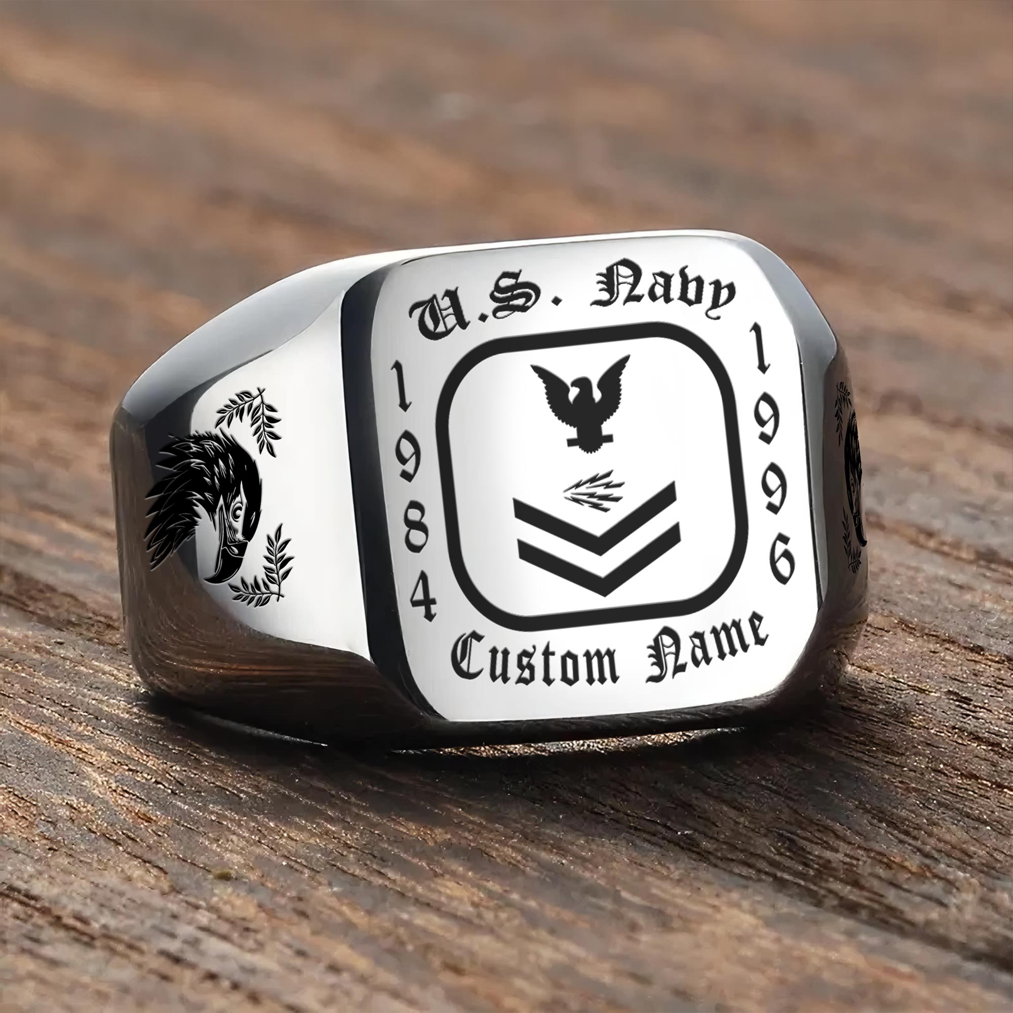 You’re enabled to customize your name, rank, rating, etc. to have them printed on the personalized engraved men’s ring. Create a unique piece that reflects your military journey and personal achievements.