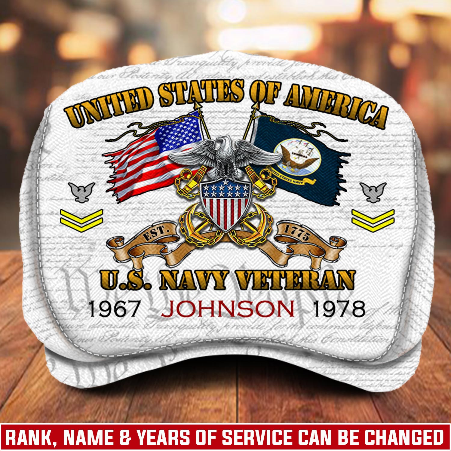 Embrace individuality with our customizable Jeff cap, offering a range of options, such as rank, name, and years of service. Create a cap that is as distinctive as your military service, tailored to showcase your personal narrative and achievements.