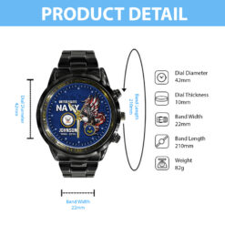 Customize your Black Stainless Steel Watch with your name, rank, and years of service for a truly one-of-a-kind timepiece. This personalized feature allows you to showcase your military journey with pride and distinction.