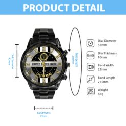 Personalize your Black Stainless Steel Watch with custom engravings of your name, rank, and years of service. This thoughtful addition transforms your watch into a cherished memento, honoring your dedication and commitment to service.