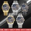 Make your Diamond-Cut Bezel Watch a reflection of your personal journey by including custom details like your name, rank, and years of service. This personalized feature not only adds a touch of elegance but also serves as a timeless tribute to your dedicated service to our country.