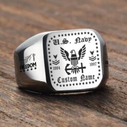 You’re enabled to customize your name, rank, rating, etc. to have them printed on the personalized engraved men’s ring. Create a unique piece that reflects your military journey and personal achievements.