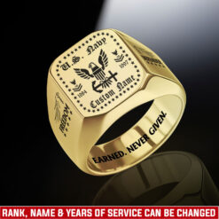 You’re enabled to customize your name, rank, rating, etc. to have them printed on the personalized engraved men’s ring. Create a unique piece that reflects your military journey and personal achievements.