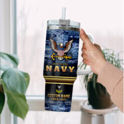 Add a special touch to your tumbler with our personalized options, perfect for commemorating the service of veterans with custom ranks, names, and more.
