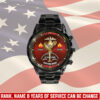 Make your Black Stainless Steel Watch uniquely yours by adding your custom information such as name, rank, and years of service. This personalized detail adds a special touch, celebrating your military journey with elegance and grace.