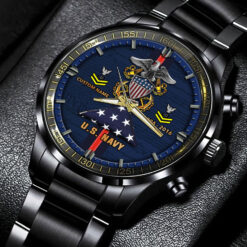 Make your Black Stainless Steel Watch a reflection of your personal journey by including custom details like your name, rank, and years of service. This personalized feature not only adds a touch of elegance but also serves as a timeless tribute to your dedicated service to our country.