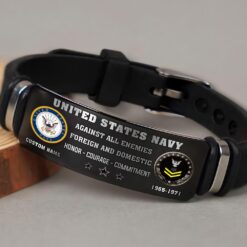 Incorporating an adaptive strap mechanism, the bracelet transcends traditional sizing limitations. It emerges as a profound tribute to veterans, symbolizing dedication, service, and the enduring spirit of patriotism.