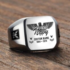 You’re enabled to customize your name, rank, rating, etc. to have them printed on the personalized engraved men’s ring. Create a unique piece that reflects your military journey and personal achievements.