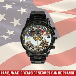 Personalize your Black Stainless Steel Watch with custom engravings of your name, rank, and years of service. This thoughtful addition transforms your watch into a cherished memento, honoring your dedication and commitment to service.