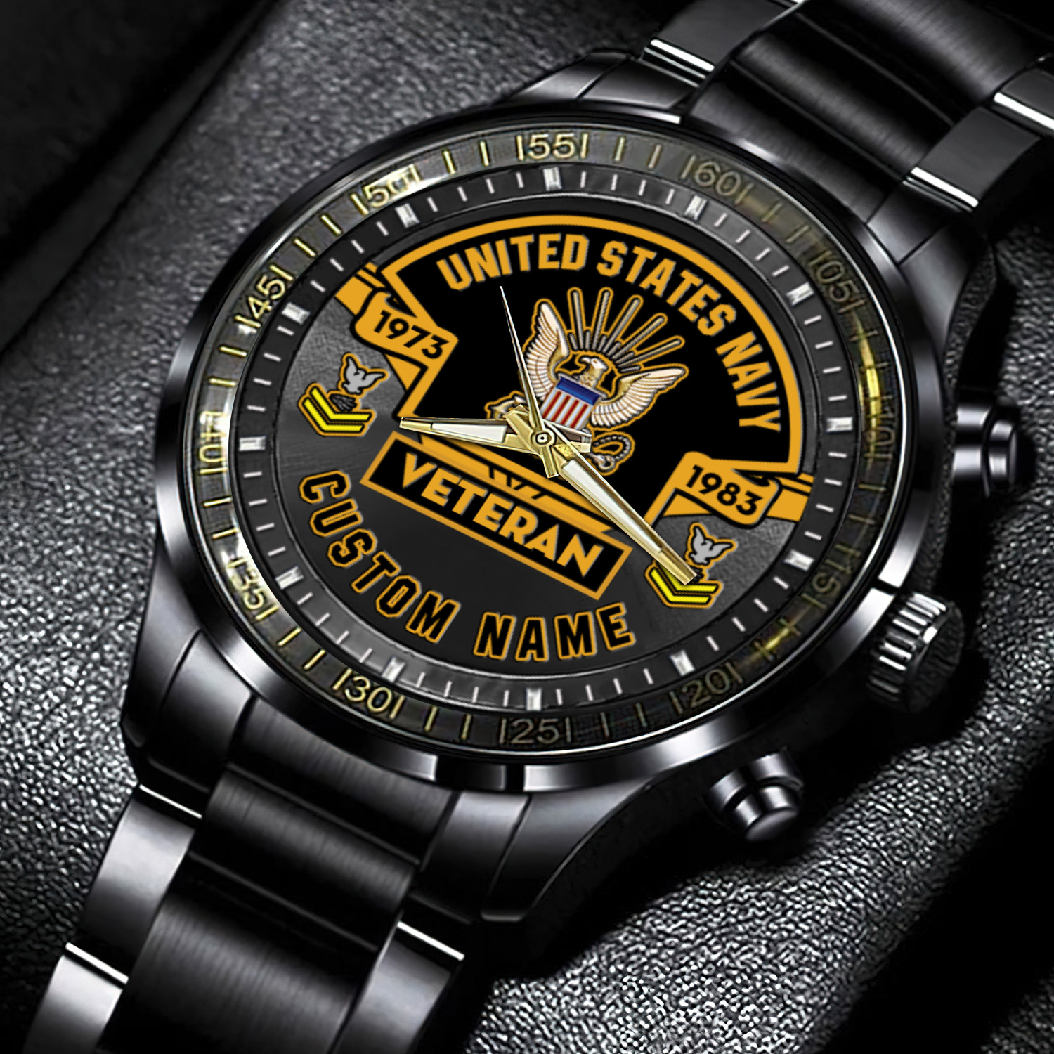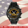 Elevate your Black Stainless Steel Watch with a personal touch by incorporating your custom details like name, rank, and years of service. This unique addition commemorates your military experience in a stylish and meaningful way.