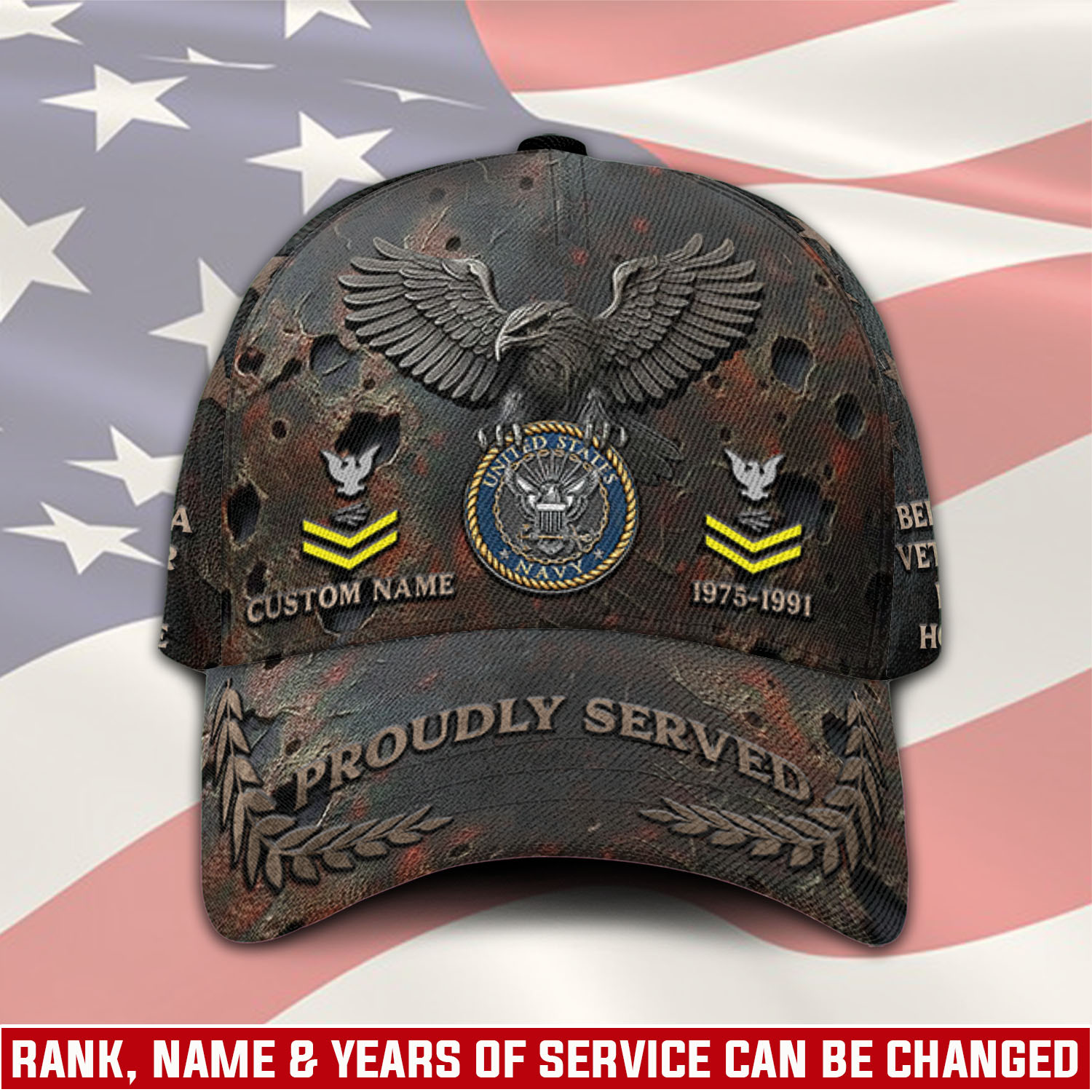 Adding custom elements like rank, name, and years of service transforms this cap into a personalized keepsake that will be cherished and unique.
