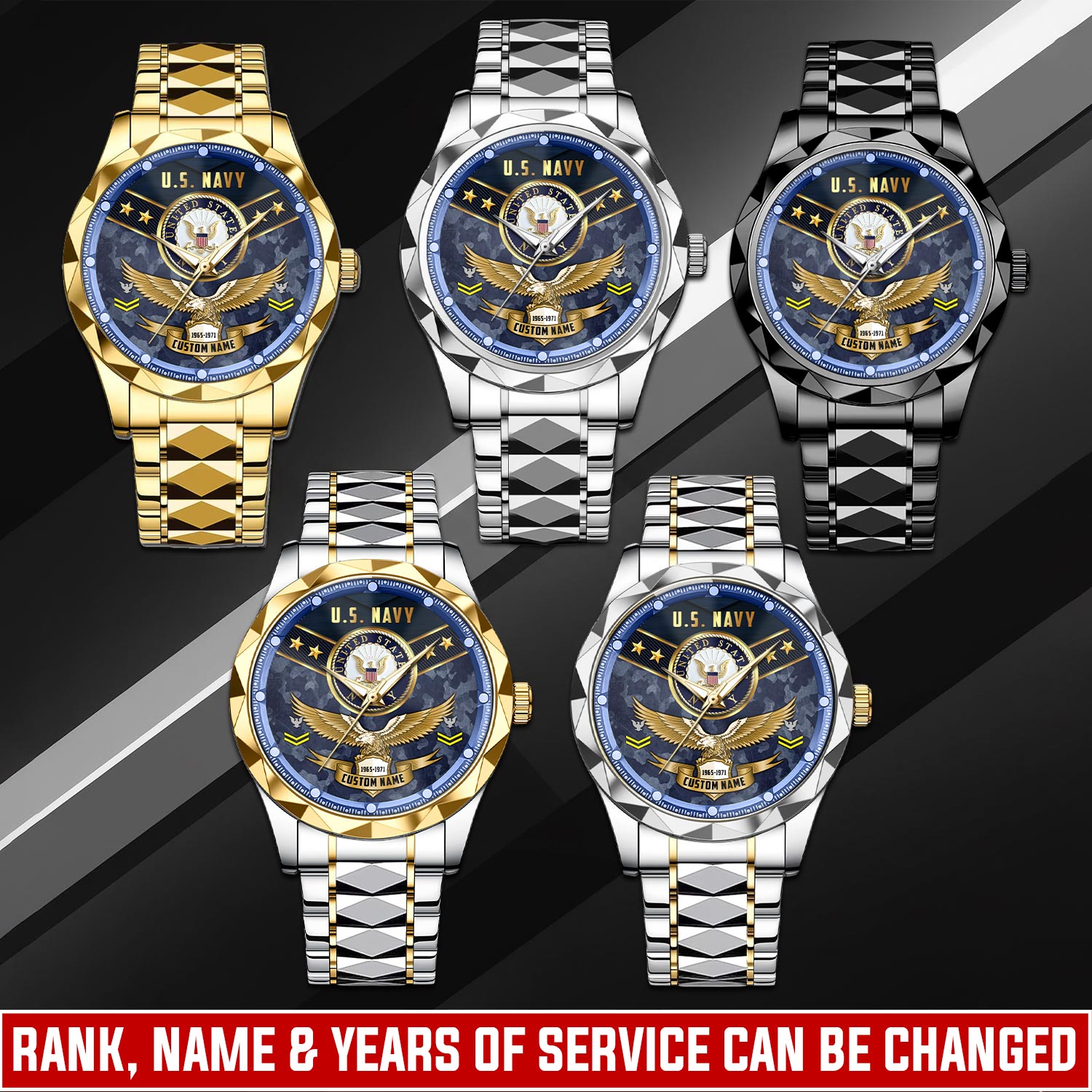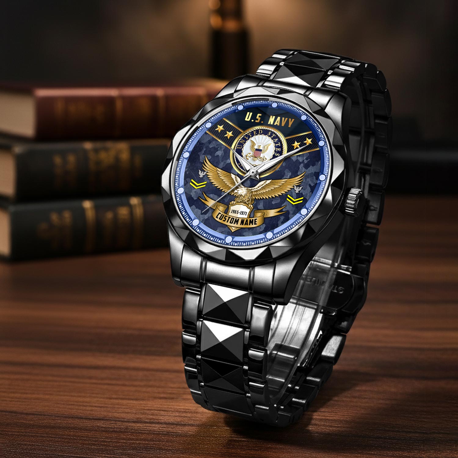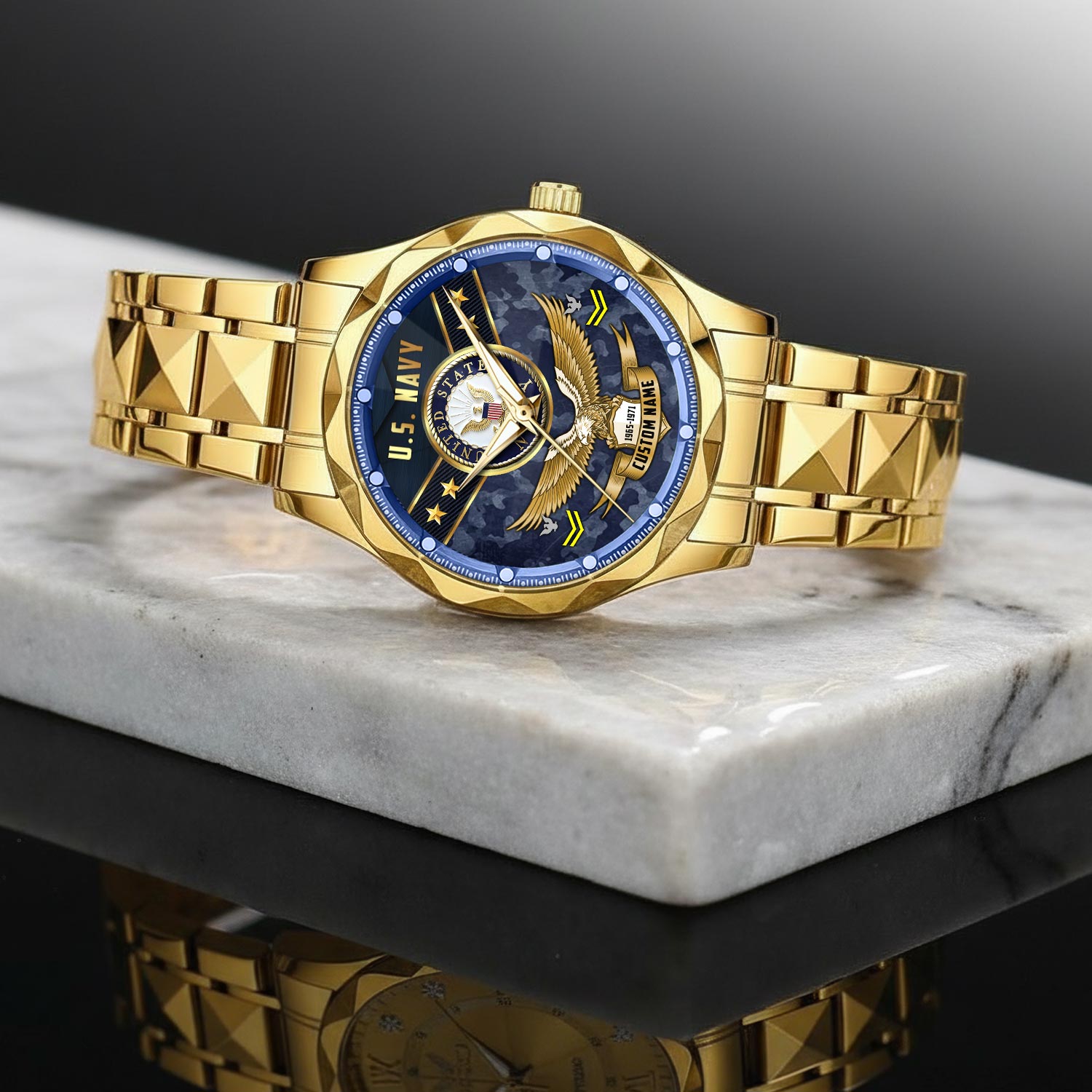 Elevate your Diamond-Cut Bezel Watch with a personal touch by incorporating your custom details like name, rank, and years of service. This unique addition commemorates your military experience in a stylish and meaningful way.