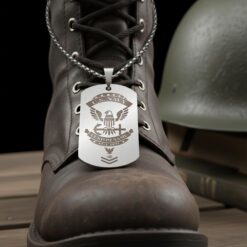Combining heartfelt symbolism with refined craftsmanship, this dog tag features artistically engraved military-themed artwork on both sides. The design resists wear and weathering, allowing its powerful message to remain clear and poignant for years to come. A meaningful keepsake for those who carry memories close and values even closer.