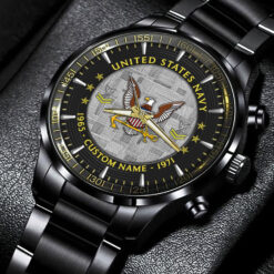 Make your Black Stainless Steel Watch uniquely yours by adding your custom information such as name, rank, and years of service. This personalized detail adds a special touch, celebrating your military journey with elegance and grace.