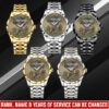 Personalize your Diamond-Cut Bezel Watch with custom engravings of your name, rank, and years of service. This thoughtful addition transforms your watch into a cherished memento, honoring your dedication and commitment to service.