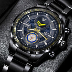 Make your Black Stainless Steel Watch uniquely yours by adding your custom information such as name, rank, and years of service. This personalized detail adds a special touch, celebrating your military journey with elegance and grace.