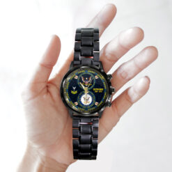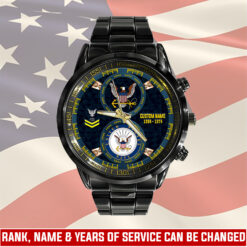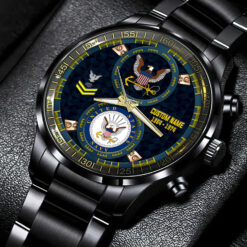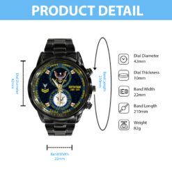 Make your Black Stainless Steel Watch a reflection of your personal journey by including custom details like your name, rank, and years of service. This personalized feature not only adds a touch of elegance but also serves as a timeless tribute to your dedicated service to our country.