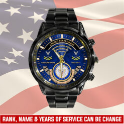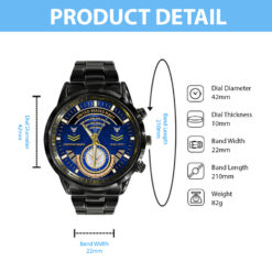 Make your Black Stainless Steel Watch uniquely yours by adding your custom information such as name, rank, and years of service. This personalized detail adds a special touch, celebrating your military journey with elegance and grace.
