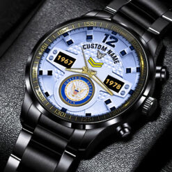 Customize your Black Stainless Steel Watch with your name, rank, and years of service for a truly one-of-a-kind timepiece. This personalized feature allows you to showcase your military journey with pride and distinction.