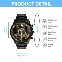 Make your Black Stainless Steel Watch uniquely yours by adding your custom information such as name, rank, and years of service. This personalized detail adds a special touch, celebrating your military journey with elegance and grace.