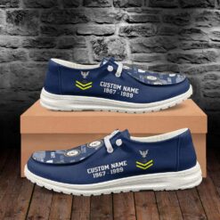 Customize your Dude Shoes with your name, rank, and years of service for a truly one-of-a-kind timepiece. This personalized feature allows you to showcase your military journey with pride and distinction.