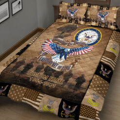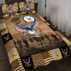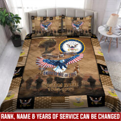 Elevate your quilt bed set with a personal touch by incorporating your custom details like name, rank, and years of service. This unique addition commemorates your military experience in a stylish and meaningful way.