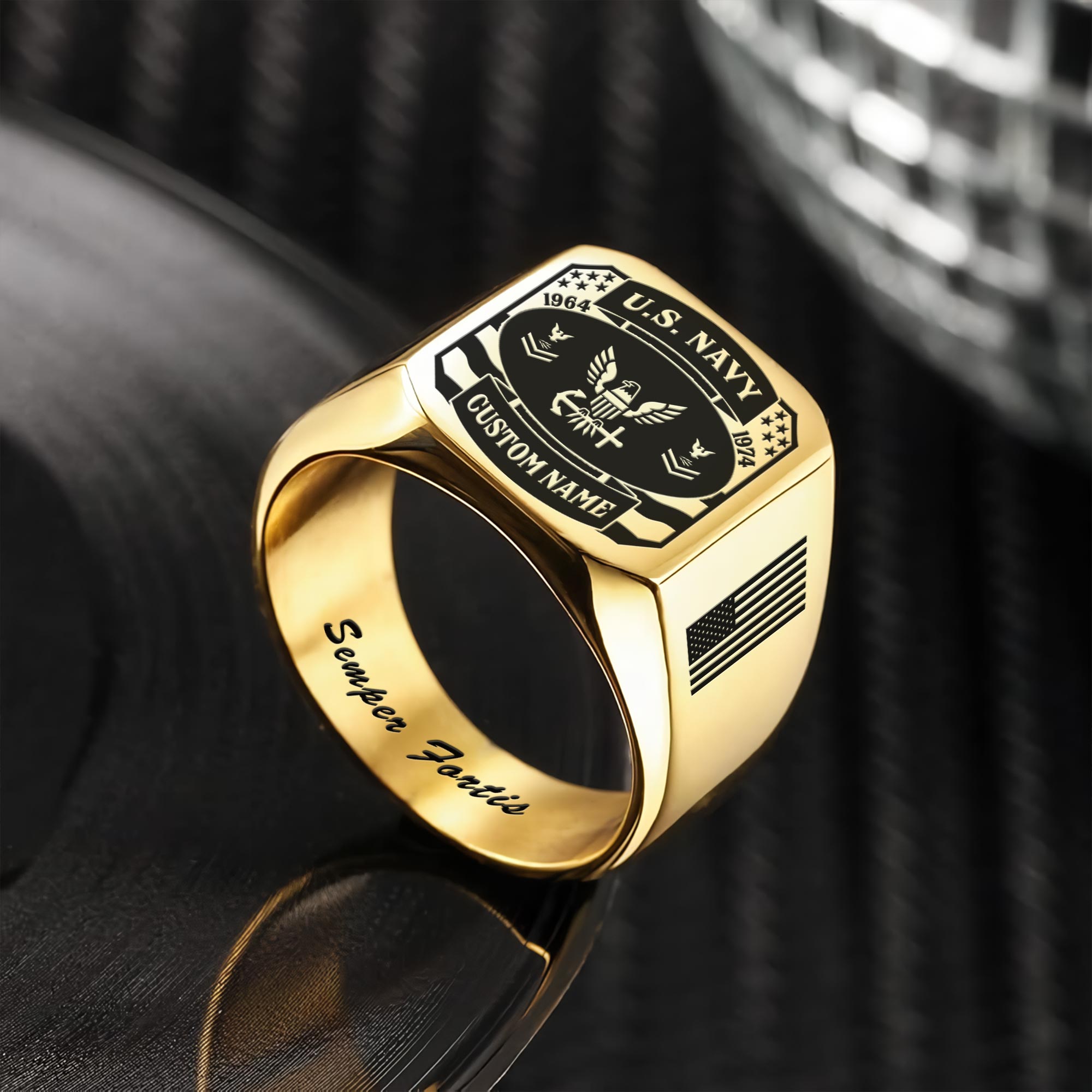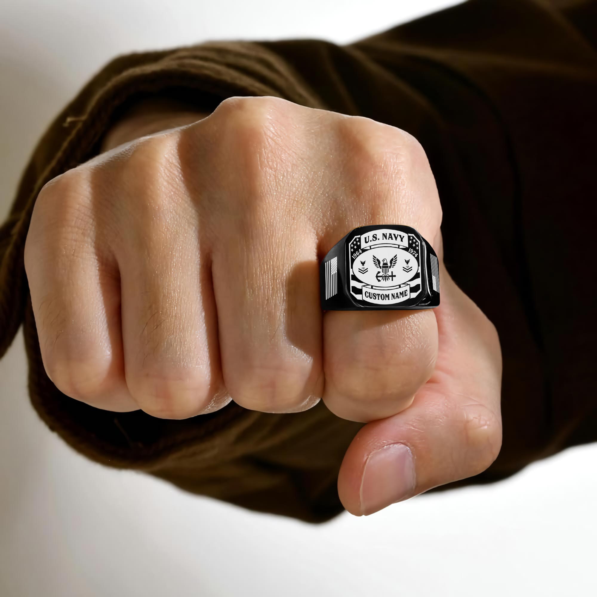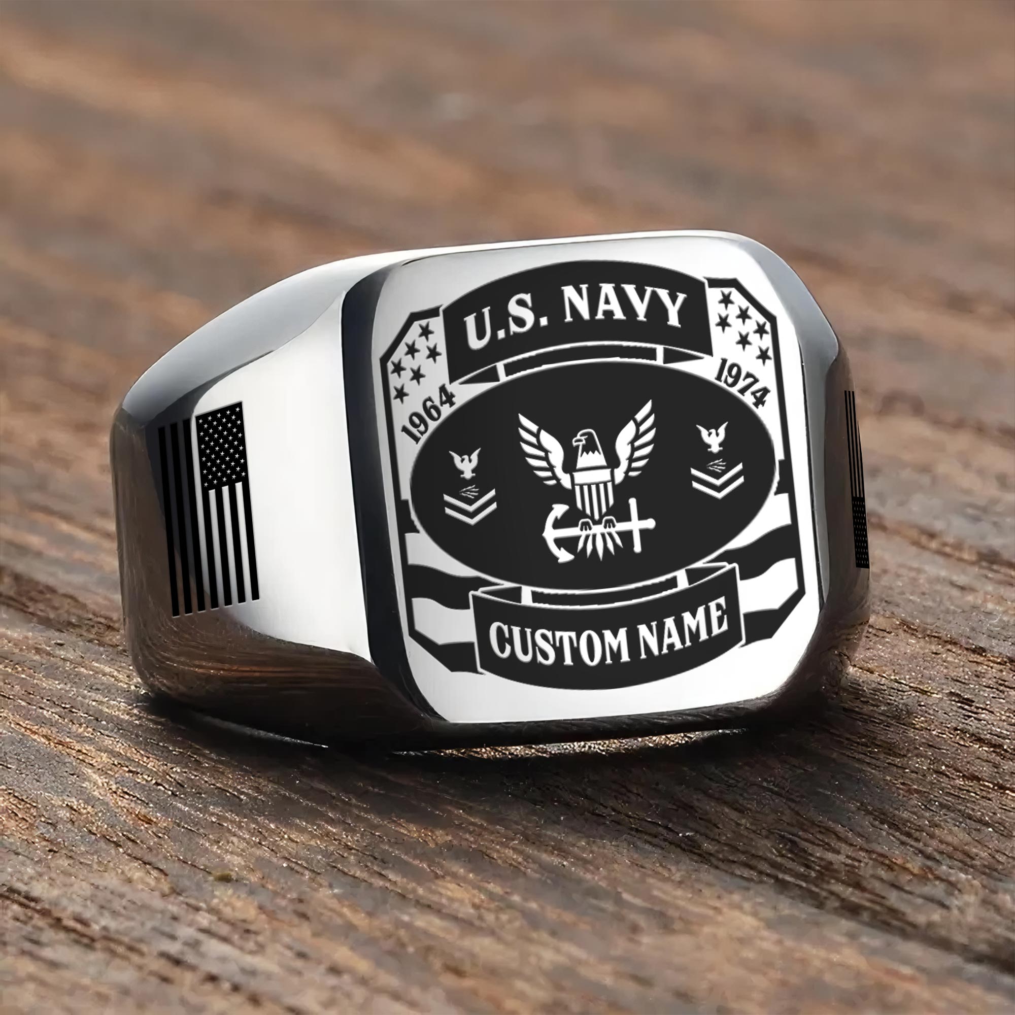 You’re enabled to customize your name, rank, rating, etc. to have them printed on the personalized engraved men’s ring. Create a unique piece that reflects your military journey and personal achievements.