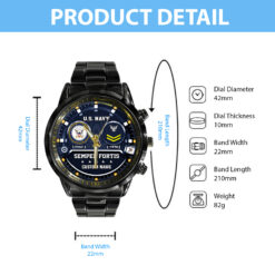 Customize your Black Stainless Steel Watch with your name, rank, and years of service for a truly one-of-a-kind timepiece. This personalized feature allows you to showcase your military journey with pride and distinction.