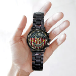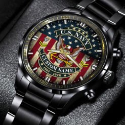 Make your Black Stainless Steel Watch a reflection of your personal journey by including custom details like your name, rank, and years of service. This personalized feature not only adds a touch of elegance but also serves as a timeless tribute to your dedicated service to our country.
